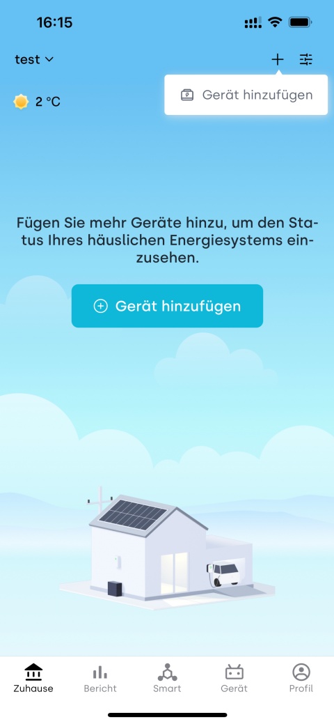 Beim ersten Login erstellt die App automatisch ein Standard-Zuhause, um alle zugehörigen Geräte zentral zu verwalten.