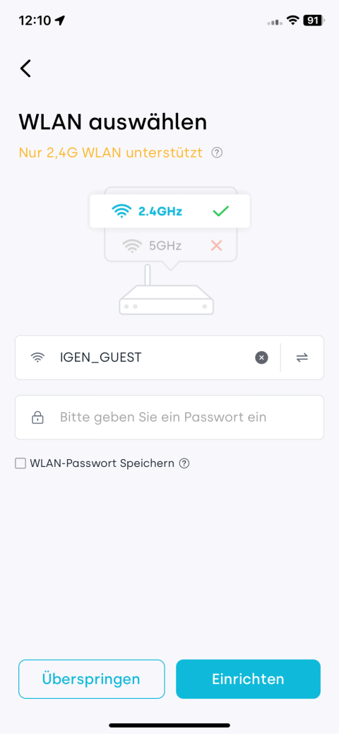 - Bitte verwenden Sie während der Einrichtung ein 2,4-GHz-WLAN. 5-GHz-Netzwerke werden nicht unterstützt.