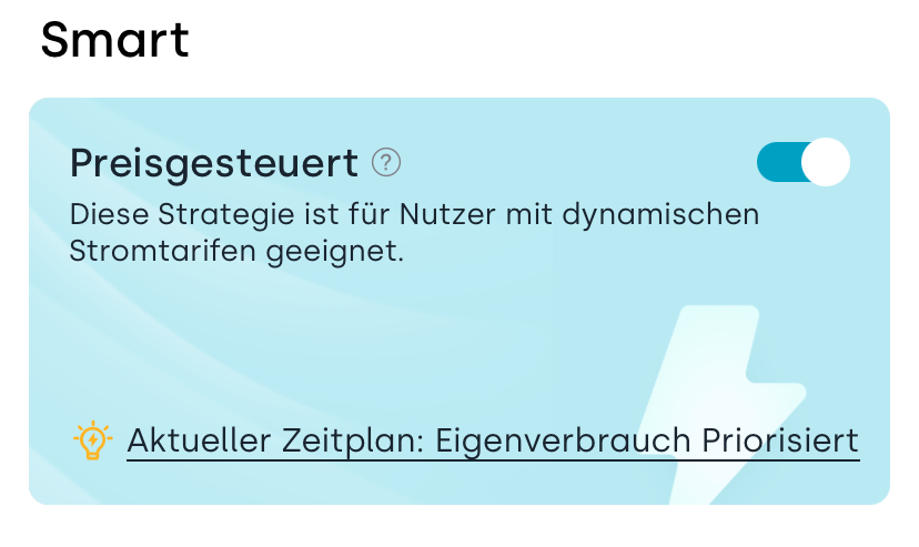 Die preisstrategie ist das Kernstück des Smart-Modus. Durch Festlegen von Preisschwellen lädt das System intelligent bei niedrigen Preisen und entlädt bei hohen Preisen – so werden die Vorteile von Strompreisschwankungen maximal genutzt.