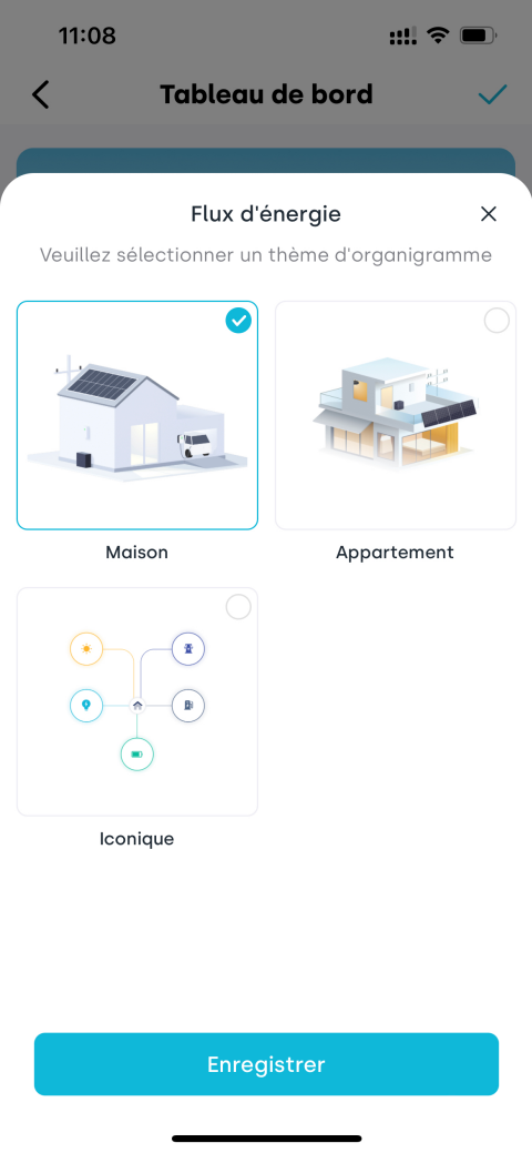 | 3 | Tableau de bord | Personnalisez le thème du graphique de flux énergétique et choisissez les données à afficher. |