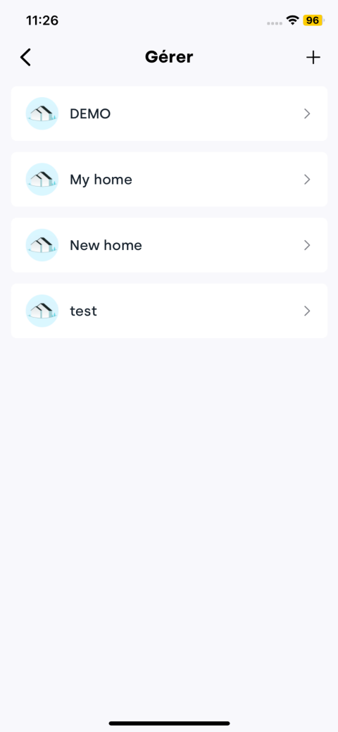 - Sur la page de gestion des maisons, appuyez sur le bouton + en haut à droite.