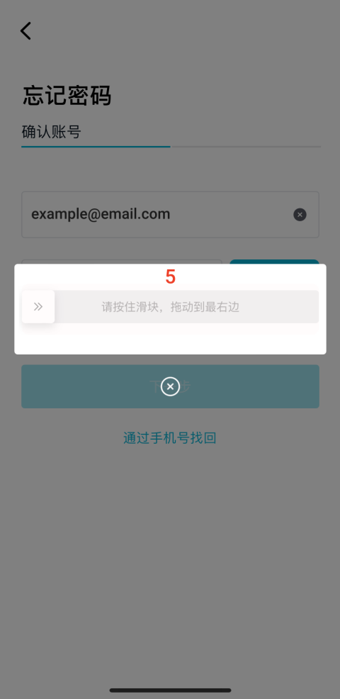拖动滑块验证邮箱/手机号;