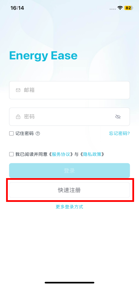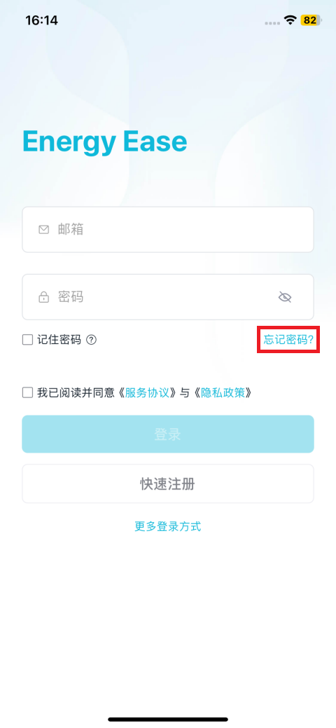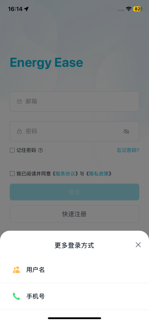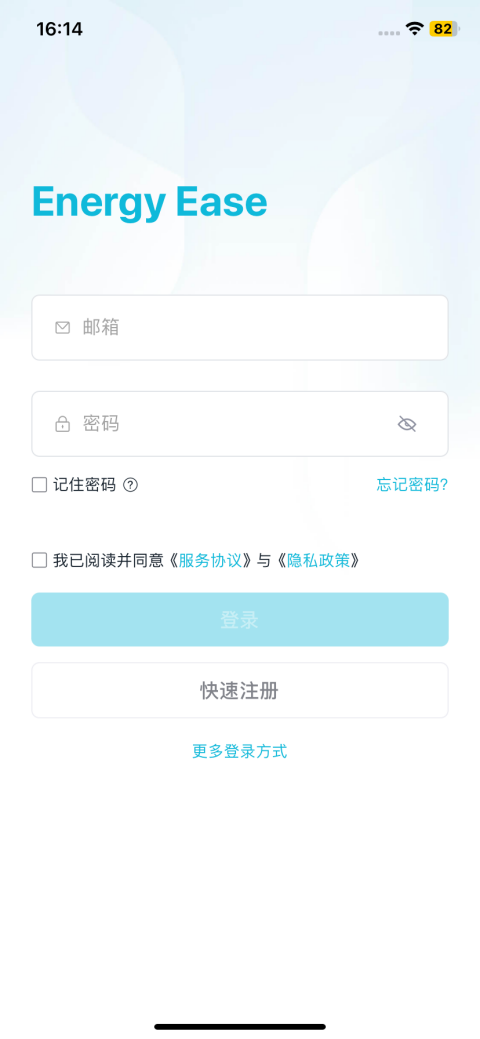 Energy Ease App安装完成后,打开App进入登录页。