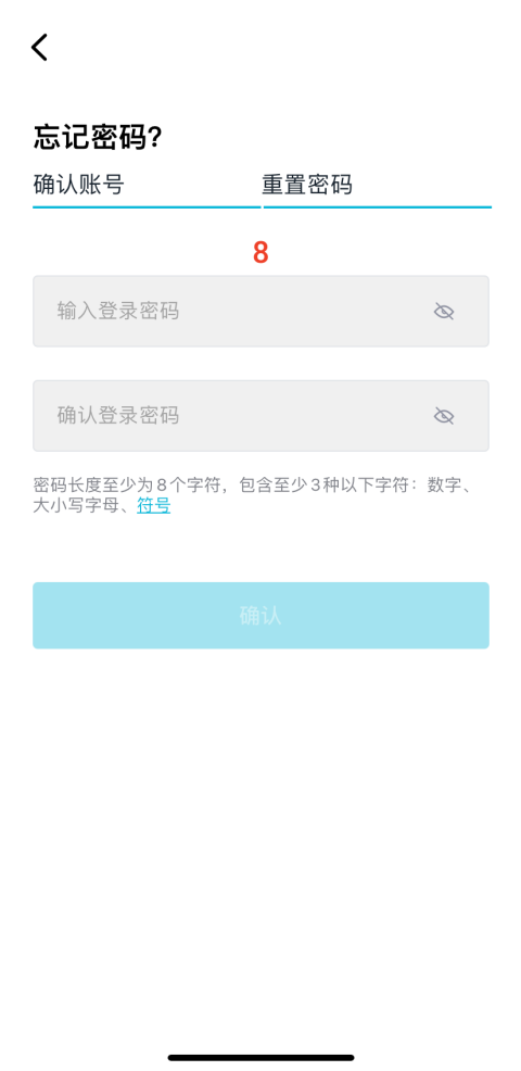 出于账号安全考虑,密码不能过于简单,如连续的阿拉伯数字“123456”或同一字符多次重复的“AAAAA123”都将被禁止使用。
